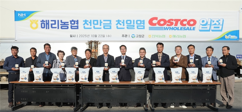 [시사의창=최진수기자] 전북특별자치도 고창군의 청정 갯벌에서 채취된 ‘고창 천만금 천일염’이 회원제 유통 대기업 코스트코(Costco)의 전국 20개 매장에 공식 입점하며 대한민국 프리미엄 천일염 시장의 새 이정표를 세웠다. 해리농협이 수년간 추진해 온 품질혁신과 브랜드 신뢰 구축이 결실을 맺은 순간이다.