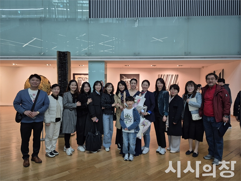 유지연 피아니스트가 연주가 끝난 후 한강합창단원들과 포즈를 취하고 있다.