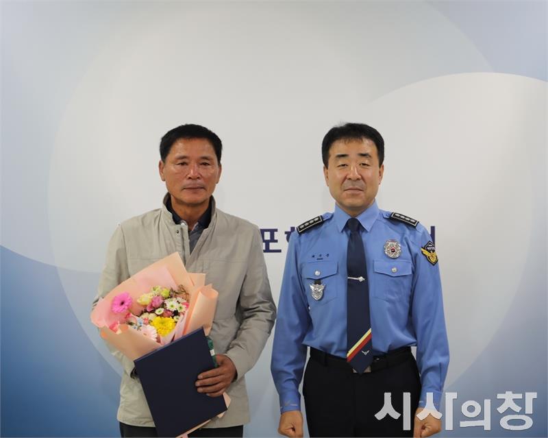 목포해양경찰서는 전복된 어선에서 8명의 소중한 생명을 구한 바다의 의인 85수복호 황동연 선장(63세)에게 표창장을 수여하며 깊은 감사의 뜻을 전했다고 27일 밝혔다.[시사의창=송상교기자]