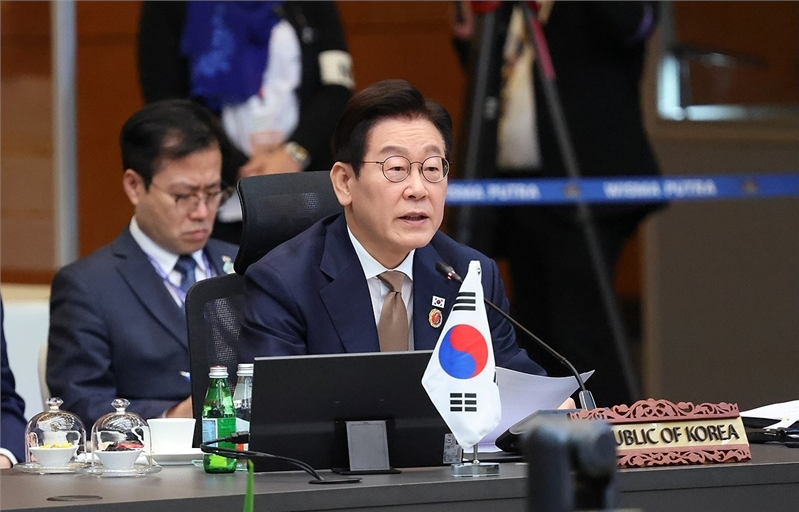 이재명 대통령이 27일 말레이시아 쿠알라룸푸르 컨벤션센터에서 열린 아세안+3 정상회의에서 발언하고 있다./연합뉴스