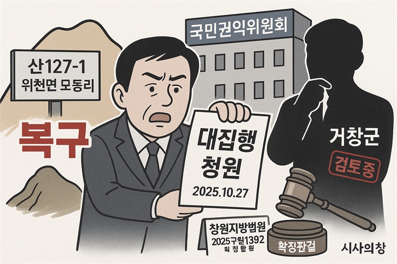 청원서에 따르면 복구 대상 지번은 경남 거창군 위천면 모동리 산127-1, 복구의무자는 ㈜A석재로 명시됐다. 근거로는 창원지방법원 ‘2025구합1392’ 확정판결을 적시했으며, ‘판결에 따른 복구가 확정됐고 복구기한이 이미 경과했으므로 군이 대집행을 통해 조속히 복구 절차를 이행하고, 그 과정을 산주에게 신속히 통보하라’고 요구했다.