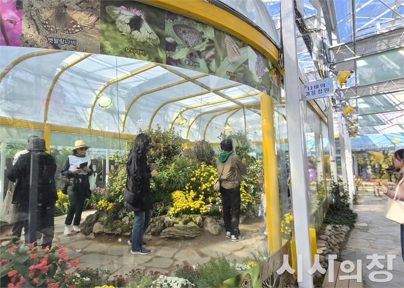 ‘나비의 가을정원’은 나비곤충생태관 내 ‘명품 국화분재 전시관’ 속에 마련된 특별 전시 공간으로, 국화 향기 속에서 생동감 넘치는 나비의 날갯짓을 감상할 수 있도록 구성됐다. 이곳에는 배추흰나비, 큰줄흰나비, 작은멋쟁이나비 등 다양한 종이 전시돼 있으며, 관람객들은 꽃 사이를 날아다니는 나비의 생생한 모습을 가까이서 즐길 수 있다.