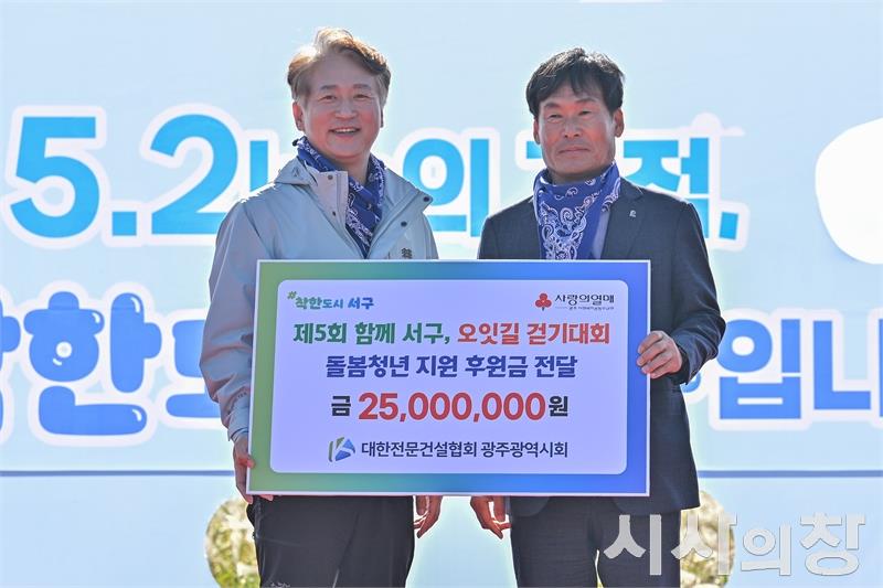 #광주광역시서구 #오잇길걷기대회 #김이강구청장 #돌봄청년 #대한전문건설협회광주광역시회 #후원금기탁 #서구아너스 #영산강자전거길 #나눔축제 #지역상생