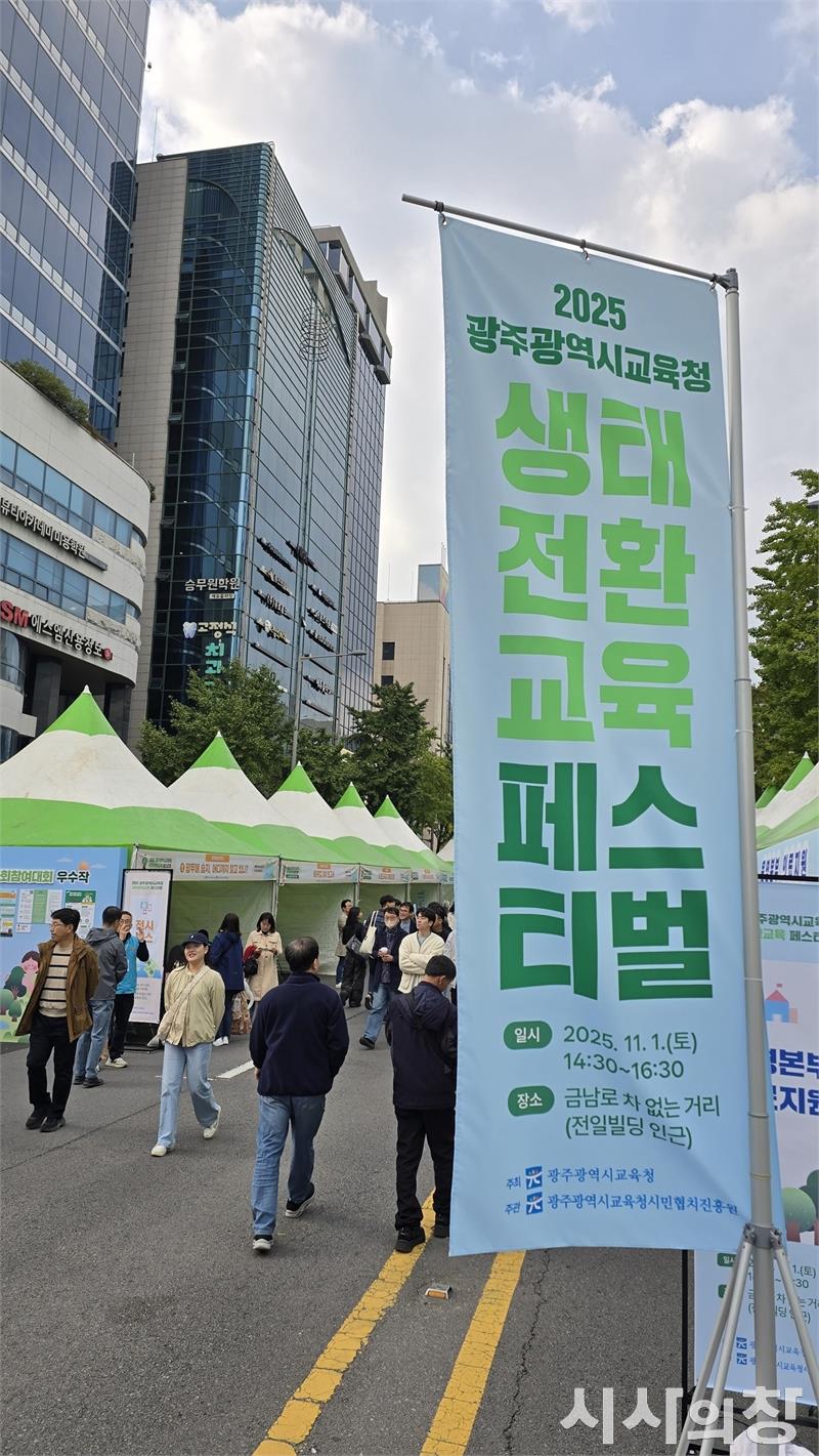 [시사의창=송상교기자] 광주광역시교육청 시민협치진흥원(원장 김진구)이 지난 1일 동구 금남로 차 없는 거리에서 ‘2025 광주광역시교육청 생태전환교육 페스티벌’을 성황리에 개최했다.