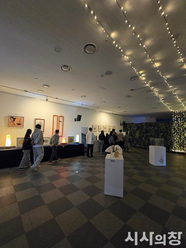 함평군은 3일 “2025 대한민국 국향대전을 맞이해 함평군립미술관 1층에 마련된 ‘사군자 테마관’이 방문객들의 큰 호응을 얻고 있다”고 밝혔다.사진은 2025 대한민국 국향대전, 함평 군립미술관 내 사군자테마관에서 관람객이 작품을 감상하는 모습.
