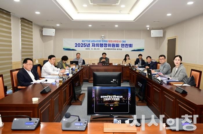 [시사의창=소순일기자] 남원시의회 자치행정위원회(위원장 손중열)는 11월 5일 자치행정위원회 회의실에서 2025년 행정사무감사를 앞두고 감사 내실화와 실무역량 강화를 위한 연찬회를 열었다.