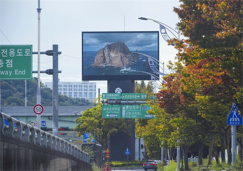 광주시는 ‘독도의 날’인 2024년10월 25일 오전 시정홍보 전광판과 빛고을TV에서 독도의 모습을 실시간으로 송출했다. ©연합뉴스