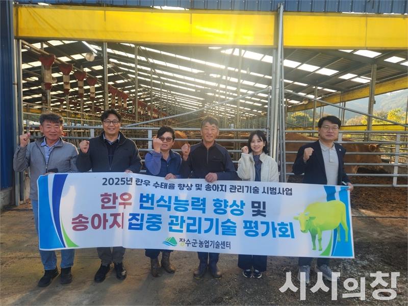 [시사의창=소순일기자] 장수군은 농촌진흥청 축산 신기술 시범사업의 일환으로 번암면 유정리 태화농장에서 ‘한우 번식우 기반 확대 시범사업 성과공유 평가회’를 열고, 현장 중심의 축산 기술 보급 성과를 공유했다고 10일 밝혔다.