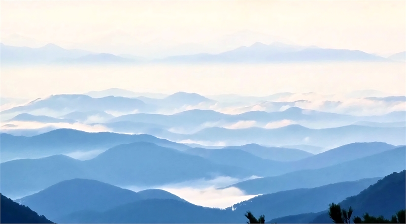 한우산 생태숲 홍보관에서 한우정까지 도보로 10분 정도 소요된다. 한우정 도착 2~3분 전 우측으로 기가막힌 산그리메가 펼쳐진다.