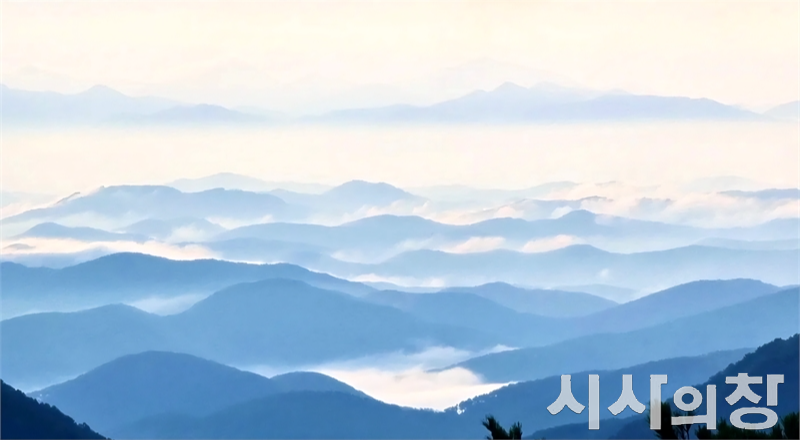 한우산 생태숲 홍보관에서 한우정까지 도보로 10분 정도 소요된다. 한우정 도착 2~3분 전 우측으로 기가막힌 산그리메가 펼쳐진다.