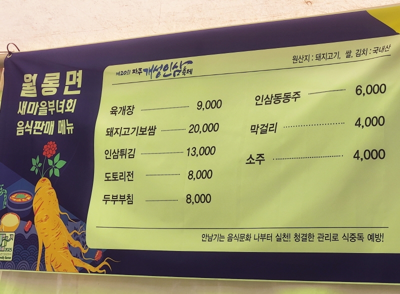 인삼튀김과 막걸리에 허기를 달래던 중 평소 안면이 있는 김윤정 월롱면장이 눈에 들어온다. 앞치마를 두르고 주문과 서빙을 하느라 경황없어 보이는 김 면장은 눈인사만 하고 부지런히 손님상을 치우고 있다. 파주시에서 문화행정과장과 관광과장 등을 역임한 김윤정 면장은 풍부한 행정 경험만큼이나 축제 현장에서도 열심이다.