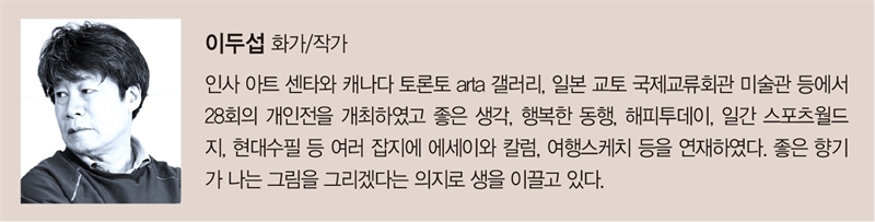 [시사의창 2025년 11월호=이두섭 작가] 가을의 색을 보이는 그대로 보는 것이 예전 같지 않다. 마음으로 받아들이다 보니. 색이 변하는 나뭇잎과 들판, 안개 낀 아침의 풍경은 새로운 미술 언어가 된다. 붓을 들기 전. 이 모든 감각은 내면에 저장되어, 캔버스 위에 감정의 층으로 쌓인다. 가을은 감각의 확장이며, 수용의 시간이다. 가을은 단지 아름답기만 한 계절은 아니다. 그것은 수확의 기쁨과 동시에 소멸의 슬픔을 품고 있다. 이 이중성을 깊이 느끼며, 자기 삶을 되돌아본다. 지나온 시간의 흔적을 떠올리며, 그림 속에 추억을 녹여낸다. 어떤 화가는 가을을 통해 상실을 표현하고, 어떤 화가는 새로운 시작을 암시한다. 그 태도는 고요하지만 절대 무기력하지 않다. 오히려 깊은 사유 속에서 창조의 에너지를 끌어올린다.