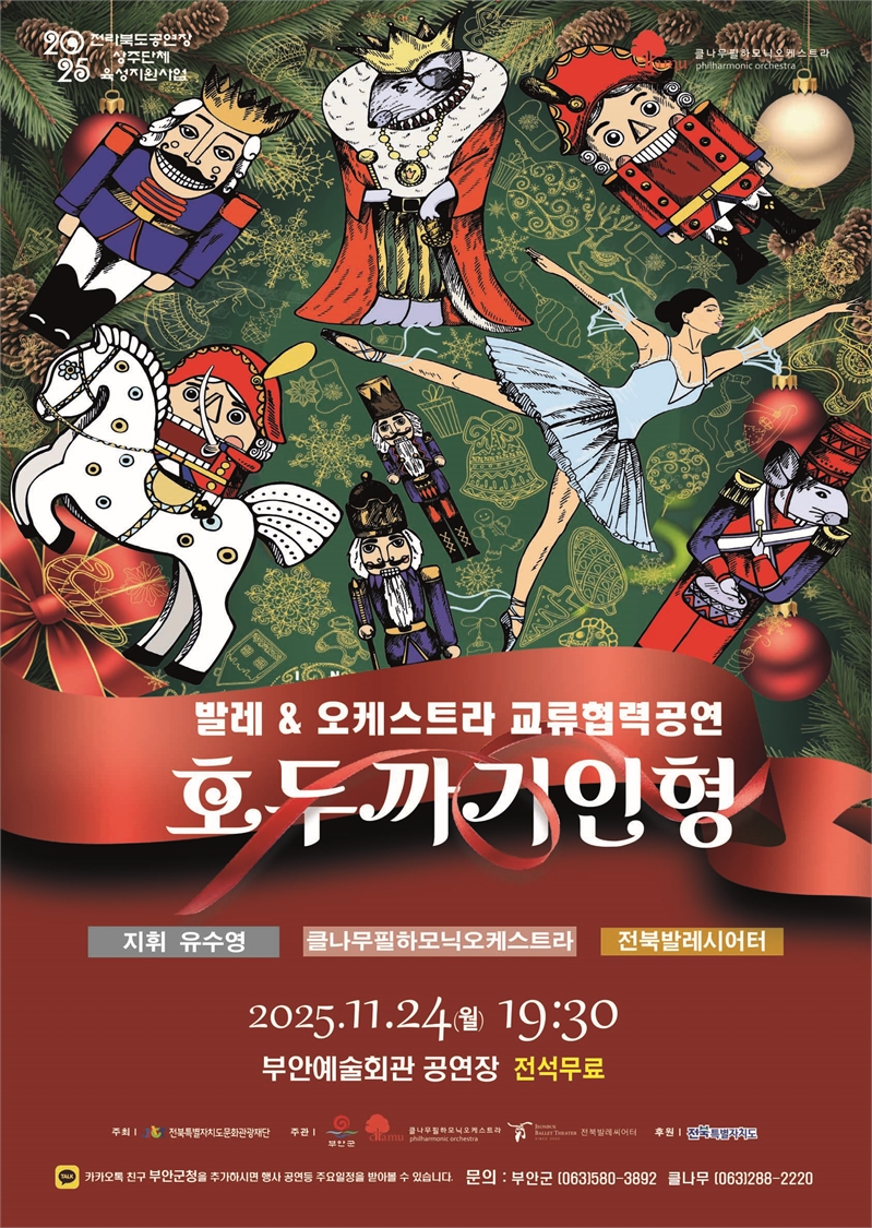 [시사의창=최진수기자] 매서운 겨울바람이 불기 시작하는 11월, 부안예술회관이 도민들에게 클래식의 향기와 예술적 감동을 선사한다. 오는 24일 오후 7시 30분, 부안예술회관 대공연장에서 열리는 ‘발레 & 오케스트라 호두까기인형’ 공연은 차이콥스키의 명작을 통해 겨울의 낭만을 한껏 물들이는 무대로 기대를 모은다.