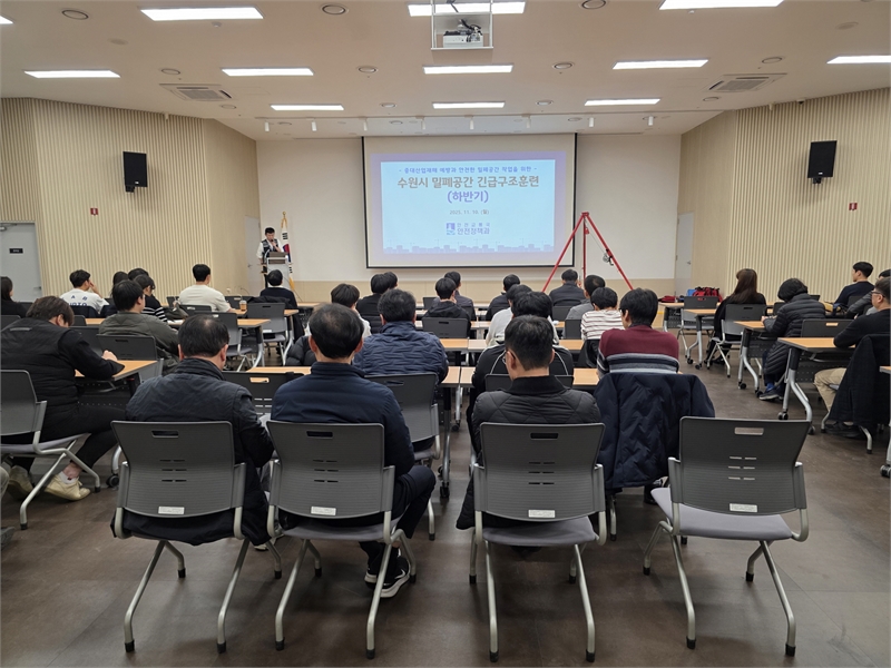 [시사의 창=조상연 기자] 수원특례시는 10일 수원 농수산물도매시장 관리동 대회의실에서 ‘하반기 밀폐공간 긴급구조 훈련’을 진행하며 관내 밀폐공간 작업 중 발생 가능한 질식 등 긴급사고 대응 능력을 집중 점검했다. 이번 훈련에는 수원시 밀폐공간작업프로그램을 시행 중인 50개 부서와 밀폐공간을 관리하는 수탁기관·업체가 대거 참여했다.