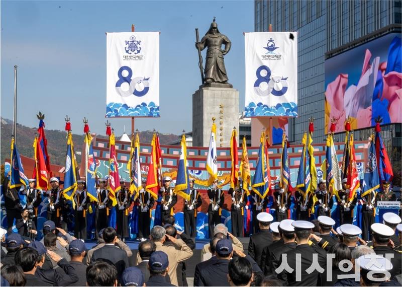 해군은 11월 11일(화) 오전 이순신장군동상 앞 특설무대에서 강동길 해군참모총장 주관으로 제80주년 해군창설기념식을 개최했다.
