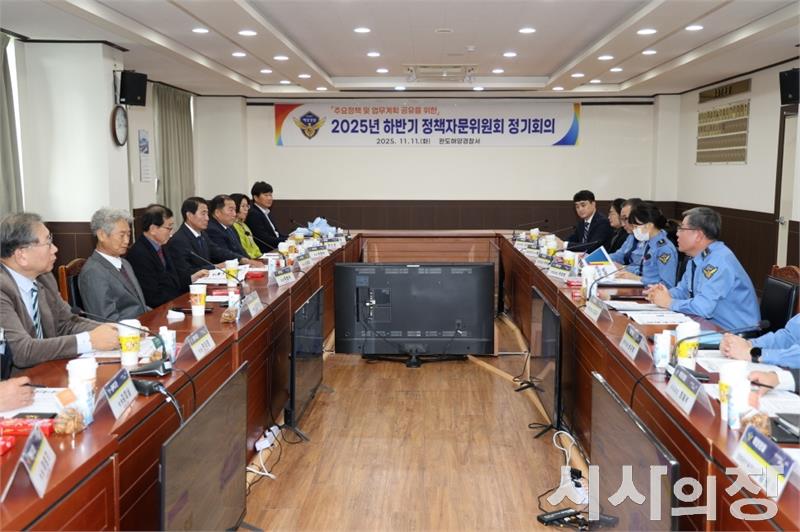 [시사의창=송상교기자] 완도해양경찰서(서장 김길규)는 11일 ‘2025년 하반기 정책자문위원회 정기회의’를 열고 민·관 협력 강화를 통한 해양안전 정책 추진 방향을 논의했다.