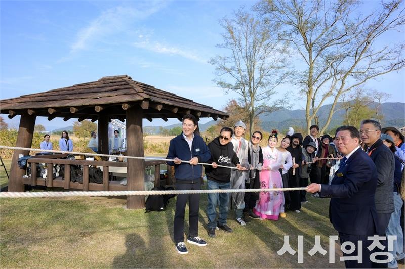 순천시는 지난 5일~7일까지 열린 2025 순천만 흑두루미 국제 심포지엄 이후, 국내외 기관에서 순천만을 벤치마킹하려는 문의가 잇따르고 있다고 밝혔다.안풍들 전봇대 철거는 순천만 자연기반해법(Nature-based Solutions, NbS) 실천 사례로 주목받으며, 심포지엄 이후 견학과 교류 요청이 국내외에서 이어지고 있다.사진은 지난 6일 순천만 안풍들에서 전봇대 철거 줄다리기를 하고 있다.