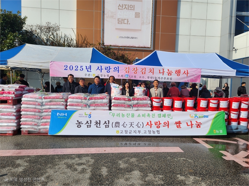 [시사의창=최진수기자] 전북특별자치도 고창에서 13일 열린 ‘2025 사랑의 김장김치·우리 쌀 나눔 행사’는 해마다 반복되는 연례행사임에도 올해 더욱 힘 있는 메시지를 남겼다. 고창농협(조합장 유덕근)과 NH농협 고창군지부(지부장 이미정)는 ‘농심천심(農心天心)’ 정신 아래 지역 공동체의 필요와 현장의 목소리에 응답하며, 그 전통을 또 한 번 이어냈다.