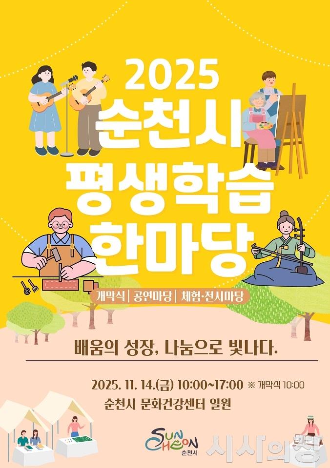시는 오는 14일 순천시문화건강센터 일원에서 ‘배움의 성장, 나눔으로 빛나다’를 주제로 ‘2025 순천시 평생학습 한마당’을 연다. 이번 행사는 다양한 계층과 세대가 함께 어우러져 학습의 가치를 공유하고, 생활 속 평생학습 문화를 확산하기 위해 마련된 시민 참여형 교육축제다.