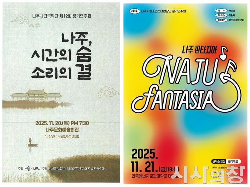 나주시가 깊어가는 가을을 맞아 시민들에게 풍성한 문화예술 향기를 전하는 두 개의 정기연주회를 연이어 선보인다. 전통 국악의 깊은 숨결과 어린이·청소년의 맑은 목소리가 어우러진 특별한 무대로, 시민들의 감성을 채우는 예술의 장이 펼쳐질 전망이다.[시사의창=송상교기자]