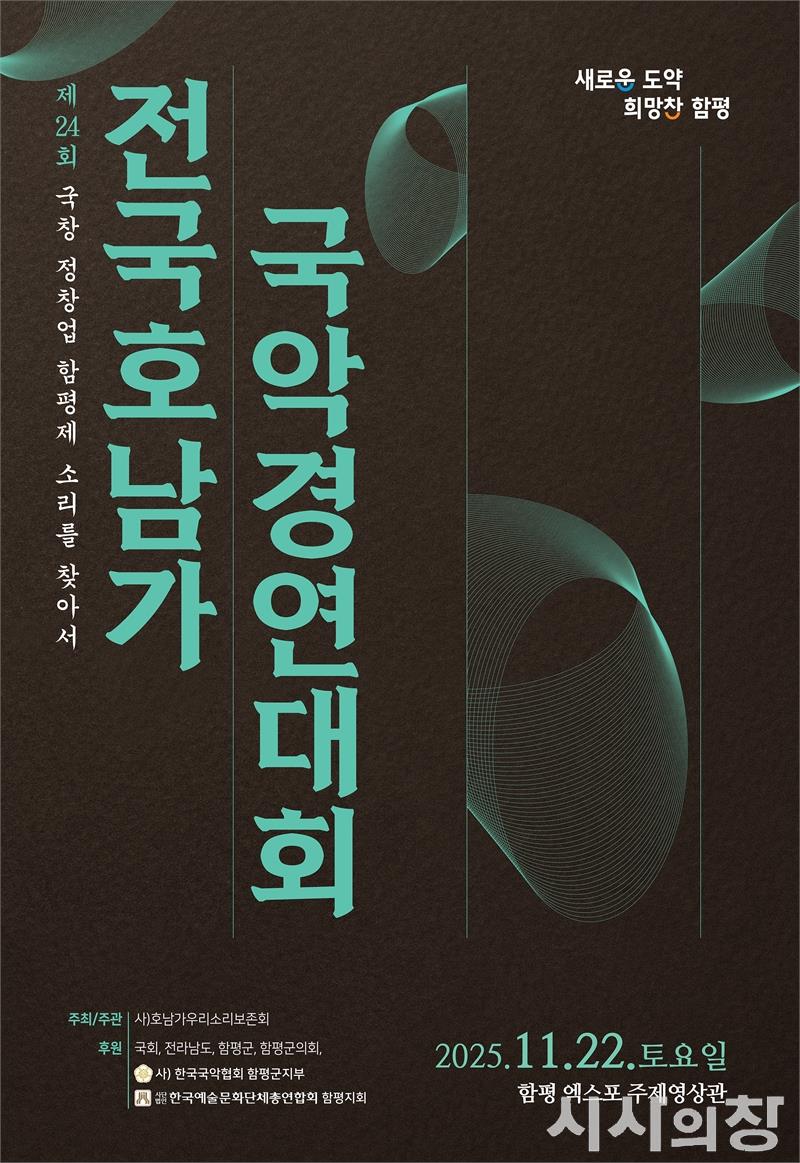 함평군은 14일 “사단법인 호남가우리소리보존회가 오는 22일 함평엑스포공원 주제영상관에서 ‘2025 제24회 전국 호남가 국악경연대회’를 개최한다”고 밝혔다.국창 정창업 선생의 고향이자 판소리 ‘호남가’의 발신지로 알려진 함평에서 열리는 이번 경연대회는, 지역을 대표하는 전통음악의 계승과 발전을 위해 2002년부터 매년 개최되고 있다.