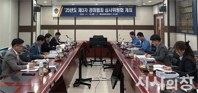 [시사의창=송상교기자] 목포해양경찰서(서장 채수준)는 "지난 13일 내부위원 3명과 외부 법률전문가 4명이 참여한 가운데 ‘경미범죄 심사위원회’를 개최했다"고 14일 밝혔다.