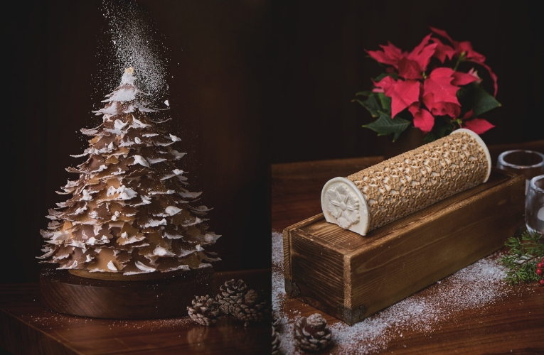 ‘엘레강스 한옥’은 정제된 선과 구조미를 살린 원통형 실루엣이 특징이다. 잣·피칸 프랄린을 더한 크레뮤, 바닐라 비스퀴, 배 콤포트, 초콜릿 가나슈 몽테가 층위를 이루며 고소함과 산뜻함, 묵직한 밀도를 균형 있게 전달한다. ‘사팽 디베르’는 겨울 숲의 나뭇결과 눈 내린 질감을 텍스처로 재현하고 금박으로 마감해 격조를 높였으며, 제누아즈에 딸기 마멀레이드와 마스카포네 크림, 생딸기를 더해 산뜻한 겨울 미감을 완성했다. 전통과 현대의 조화를 뜻하는 온고지신(溫故知新)의 미학을 디저트로 구현한 셈이라는 평가가 뒤따른다.