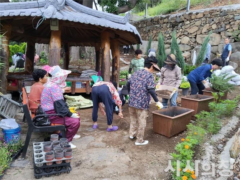 순천시는 최근 ‘2025년 청정전남 으뜸마을 만들기’사업 시군 종합평가에서 우수상에 선정돼 상사업비 2천만 원을 확보했다고 밝혔다.‘청정전남 으뜸마을 만들기’는 주민의 자발적인 참여와 협력으로 깨끗하고 아름다운 마을을 조성하기 위한 전라남도의 대표 역점사업으로, 2021년부터 도내 22개 시군이 참여해 추진해오고 있다. 사진은 마을보호수 주변 꽃밭을 조성중인 해룡면 중흥마을 주민들.