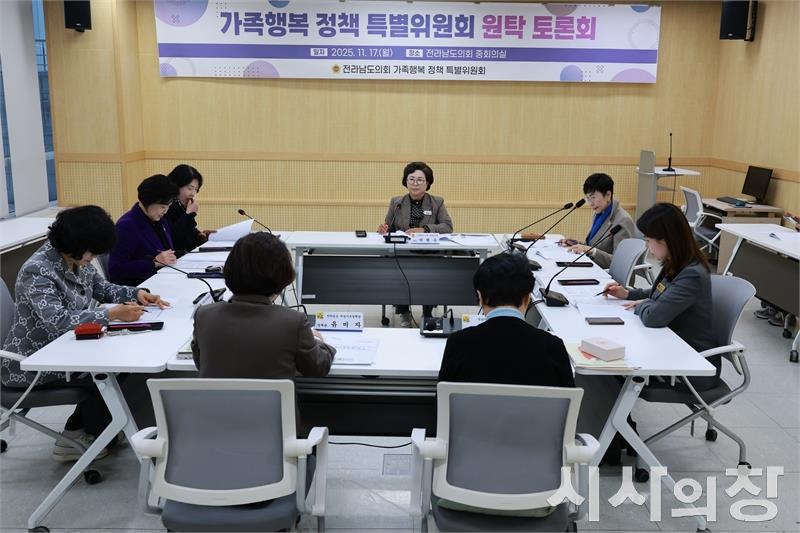 전라남도의회 가족행복 정책 특별위원회가 17일 도의회 중회의실에서 전남의 미래 지속 가능성에 직결된 2026년도 가족 정책을 점검하기 위한 원탁토론회를 개최했다. 토론회는 아이 낳아 키우기 좋은 전남을 만들기 위해 전라남도의 ’26년도 가족 정책의 중점 시책에 대해 관계 부서 및 기관으로부터 설명을 청취하고, 정책의 실효성을 높일 구체적인 의견을 교환하는 데 중점을 두었다.[시사의창=송상교기자]