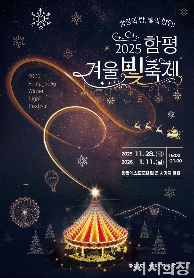 ‘2025 함평 겨울빛축제’는 ‘함평의 밤, 빛의 향연’을 주제로 오는 11월 28일부터 2026년 1월 11일까지 45일간 함평엑스포공원 일원에서 개최된다. 지난해 첫 개최임에도 8만여 명이 방문해 높은 관심을 모았던 겨울빛축제는 올해 더욱 확장된 콘텐츠로 관람객을 맞이한다.