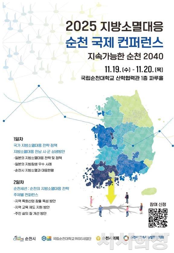 순천시(시장 노관규)는 "오는 19일과 20일 양일간 국립순천대학교 산학협력관 파루홀에서 「2025 지방소멸대응 순천 국제 컨퍼런스」를 개최한다"고 밝혔다.