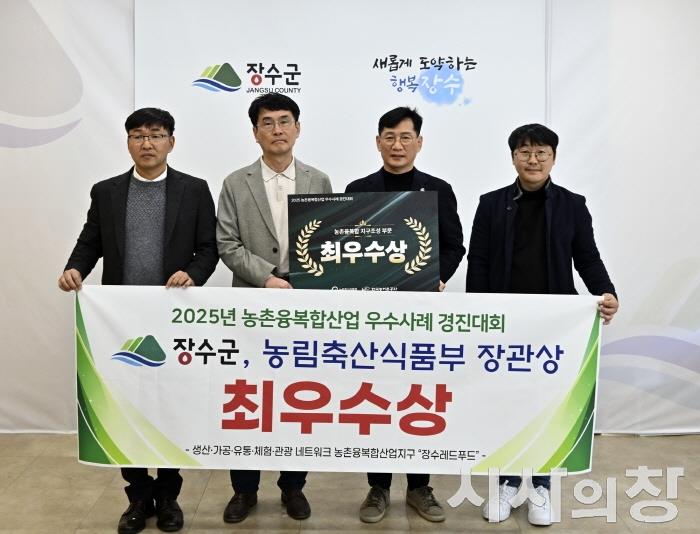[시사의창=소순일기자] 장수군이 18일 농림축산식품부가 주관한 ‘2025년 농촌융복합산업 우수사례 경진대회’에서 농촌융복합산업지구 분야 ‘최우수상’을 수상했다.