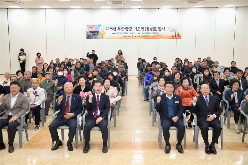 [시사의창=최진수기자] 전북특별자치도 부안에서 오래된 전통이 다시금 품격 있게 살아났다. 부안향교(전교 최관열)가 19일 오전 10시 30분 부안예술회관 다목적강당에서 지역 기관단체장, 향교 원로, 유림지도자 등 100여 명이 자리한 가운데 2025년 기로연을 개최한 것이다. 단순한 행사가 아니라, 덕행과 지혜로 지역을 이끌어 온 세대에게 예(禮)를 갖춰 존경을 표하는, 지역 공동체의 중심축을 확인하는 자리였다.