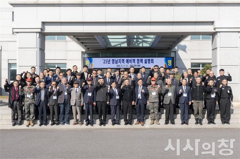 해군교육사령부는 11월 19일(수), 부대에서 영남지역 예비역을 대상으로 ’25년 영남지역 예비역 정책설명회를 개최했다.해군교육사령관(중장 강정호) 주관으로 열린 이번 설명회는 예비역들의 모군에 대한 자긍심을 고취하고 우리군 주요 정책에 대한 이해와 공감대를 형성하기 위해 마련됐다. 사진은 기념촬영을 하고 있는 모습.[시사의창=송상교기자]