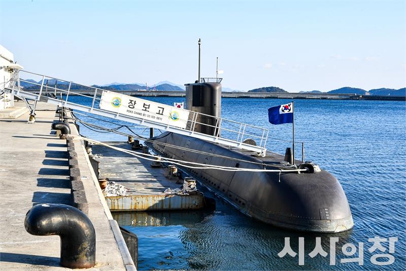 우리 해군의 잠수함 시대를 연 대한민국 1번 잠수함 장보고함(SS-Ⅰ, 1200톤급)이 올 연말 퇴역을 앞두고 11월 19일 마지막 항해를 실시하며, 34년간의 대한민국 해양주권 수호 임무의 마침표를 찍었다. 사진 은 11월 18일(화) 대한민국해군 최초의 잠수함 장보고함이 다음날 마지막 항해를 앞두고 진해 해군기지에 정박해 있다.[시사의창=송상교기자]