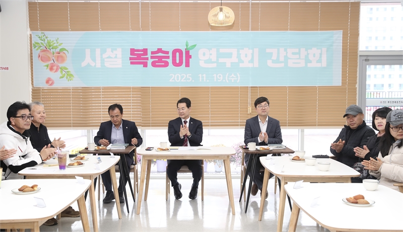권익현 부안군수는 지난 19일 부안푸드앤레포츠센터에서 시설복숭아연구회 회원들과 현장 간담회를 갖고, 재배농가들의 생생한 목소리를 직접 청취하며 산업 활성화 방안을 논의했다.