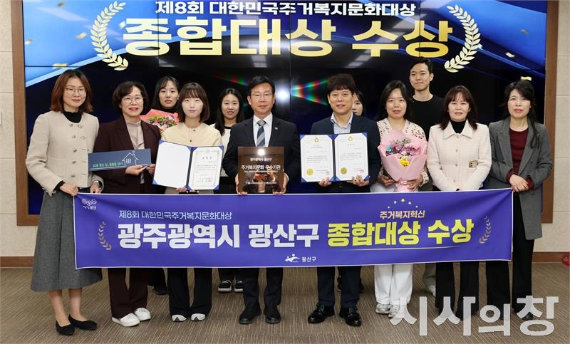 광주광역시 광산구가 지난 20일 전국 최초 ‘살던집 프로젝트’ 등 시민 삶을 바꾼 주거복지를 구현한 정책 성과로 ‘제8회 대한민국 주거복지문화대상’에서 영예의 종합대상을 받았다.[시사의창=송상교기자]