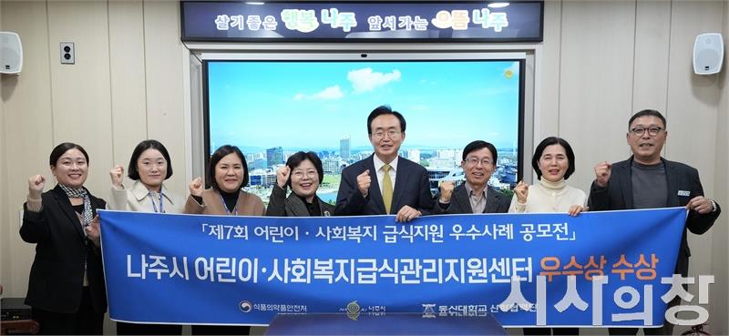 나주시는 ‘나주시 어린이 사회복지 급식관리지원센터(이하 센터)’가 식품의약품안전처가 주최한 제7회 어린이 사회복지 급식지원 우수사례 공모전에서 우수상을 수상했다고 21일 밝혔다.이번 수상은 전남 지역 센터 가운데 최초 우수상으로 나주시가 그동안 추진해 온 공공 급식 안전 강화 노력이 전국적으로 인정받았다는 데 큰 의의가 있다.[시사의창=송상교기자]
