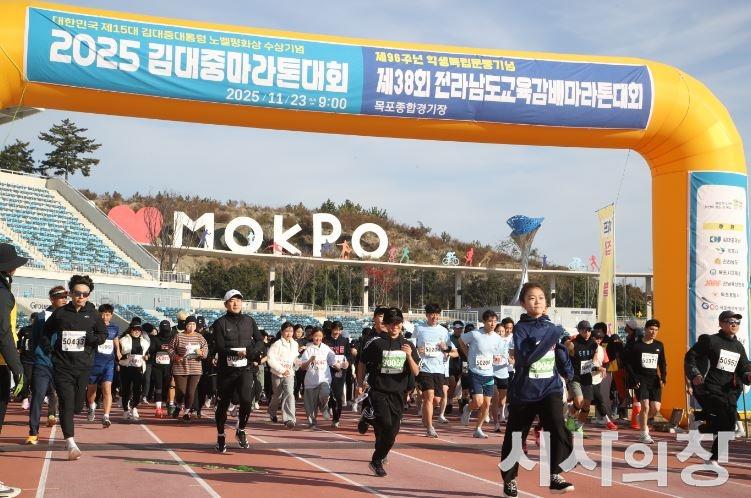 전라남도교육청(교육감 김대중)은 "23일 목포종합경기장 일원에서 열린 ‘제96주년 학생독립운동기념 제38회 전라남도교육감배 마라톤대회·2025 김대중 마라톤대회’가 총 1만여 명이 참여한 가운데 성황리에 마무리됐다"고 밝혔다.