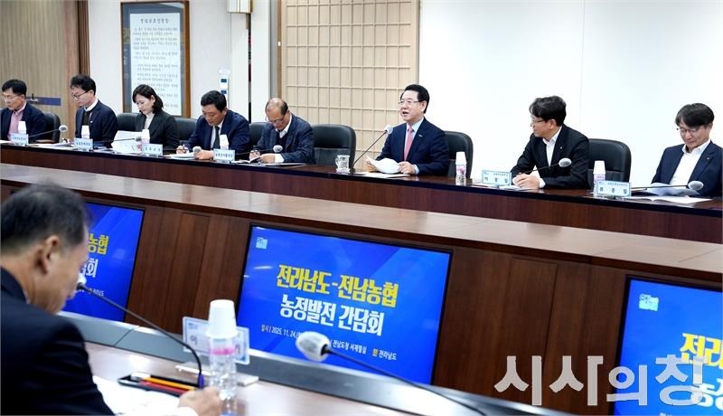 [시사의창=송상교기자] 전라남도는 "김영록 도지사가 24일 도청 서재필실에서 전남농협 조합장들과 간담회를 열고 농업 경쟁력 강화와 농업인 경영안정을 위한 공동 협력 방안을 논의했다"고 밝혔다.