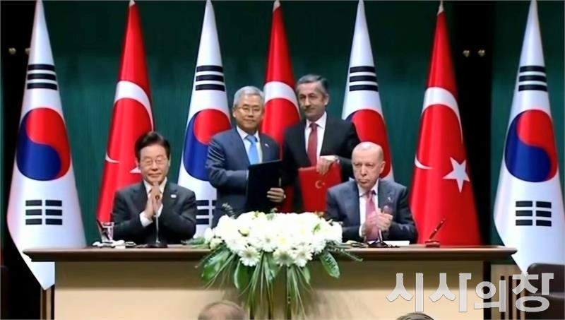 한국전력은 11월 24일(월) 튀르키예 대통령궁에서 튀르키예 원자력공사(TÜNAŞ, TÜRKİYE NÜKLEER ENERJİ ANONİM ŞİRKETİ)와 양국 정상 임석하에 『원자력 협력 양해각서(MOU)』를 체결했다.[시사의창=송상교기자]