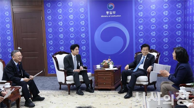 전라남도교육청(교육감 김대중)은 남북 학생이 함께 미래를 설계하는 ‘통일(統一)에서 통일(通一)로’남북 학생 교류 모델을 마련해 통일부에 공식 제안하고, 학생 주도 평화·통일교육 기반을 확대하는 사업 추진 계획을 밝혔다.사진은 김대중 전남교육감이 지난 25일 통일부를 방문해 정동영 통일부장관과 대화를 나누고 있다.[시사의창=송상교기자]