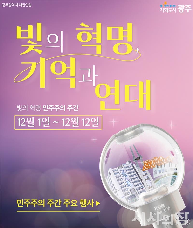 광주광역시(시장 강기정)는 2024년 12·3 불법 비상계엄 상황에서 시민들이 보여준 ‘빛의 혁명’ 연대와 대응을 기억하고, 광주 출신 한강 작가의 노벨문학상 수상 1주년을 기념해 ‘빛의 혁명, 민주주의 주간’을 12월 1일부터 12일까지 운영한다.[시사의창 = 송상교 기자]