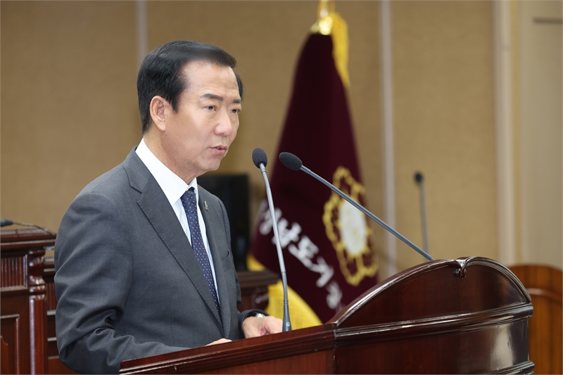 [시사의창=이태헌 기자]구인모 거창군수는 5일 제290회 거창군의회 제2차 정례회 시정연설을 통해 8,313억 원 규모의 내년도 예산안을 제출하며 2026년 군정 운영 방향을 밝혔다.