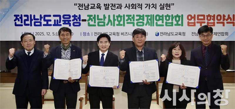 전라남도교육청과 전남사회적경제기업연합회(전남사회적기업협회, 전남마을기업협의회, 전남자활기업협회)는 12월 5일 전라남도교육청에서 ‘건강한 교육환경 조성 및 지역사회와 상생발전을 위한 업무협약’을 체결했다.양 기관은 이번 협약을 통해 전남교육 발전 및 사회적 가치 실현을 위해 협력을 강화하기로 했다.[시사의창=송상교기자]