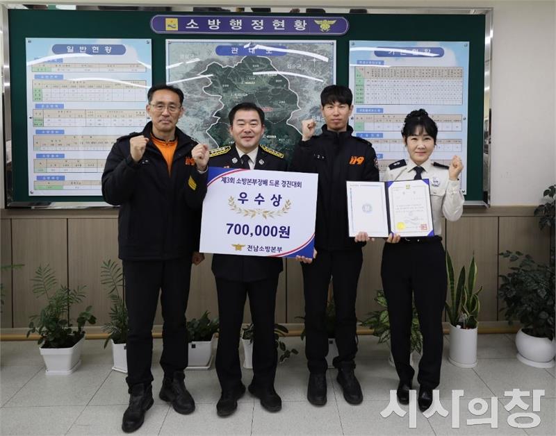 강진소방서(서장 정용인)는 "지난 4일 장흥군 장흥공설운동장 실내체육관에서 열린 ‘제3회 전남소방본부장배 드론 경진대회’에서 우수상(2위)을 수상했다"고 5일 밝혔다.