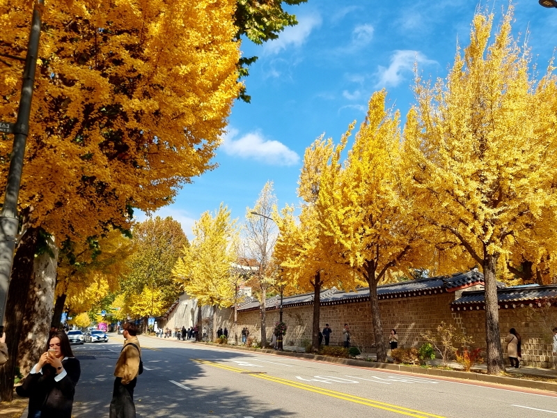 단풍을 구경하기 위해 몰려든 외국인 관광객들로 인산인해를 이룬다. 한복으로 곱게 차려입고 은행나무를 배경으로 사진을 찍는 외국인 관광객들의 표정은 너나 할 것 없이 모두가 행복 가득함 그 자체다. 주변이 온통 노란색으로 가득한 풍경이 너무나도 아름다워 길을 걸으면서 그 길이 끝나지 않기를 바라며 걸을 정도니 너나 할 것 없이 모두 이곳으로 몰려들 만하다.