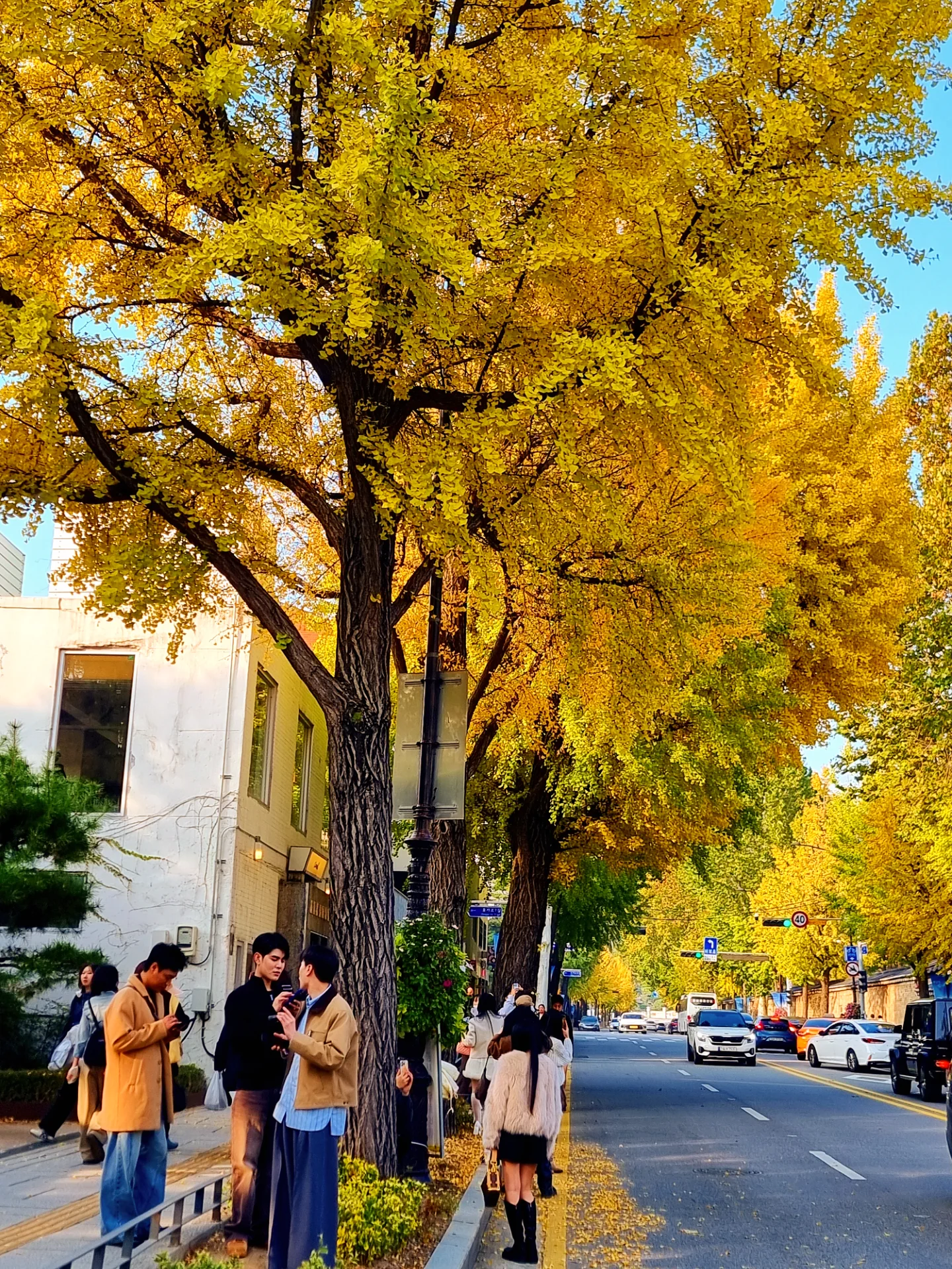 보통 서촌이라 불리는 효자로는 그야말로 단풍 명소 중의 명소로 손에 꼽힌다. 3호선 경복궁역 4번 출구로 나와 큰길에서 우회전하면 그 길 끝까지 직선으로 이어지는 왕복 4차로 양쪽에는 큼지막한 은행나무들이 줄지어 서 있다.
