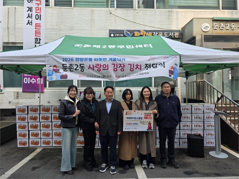 나눔의 물꼬는 지난 11월 중순 선린교회가 텄다. 선린교회는 정성껏 담근 김장김치 10kg들이 25박스를 둔촌2동에 기탁하며 취약계층을 위한 겨울 식탁을 먼저 챙겼다. 이어 11월 24일에는 둔촌2동 직능단체협의회가 김장김치 100박스를 자체 준비해 관내 가구에 직접 전달했고, 같은 날 국제라이온스협회 354-D지구 제3지역 백제라이온스클럽도 50박스를 추가로 후원해 온정을 더했다.