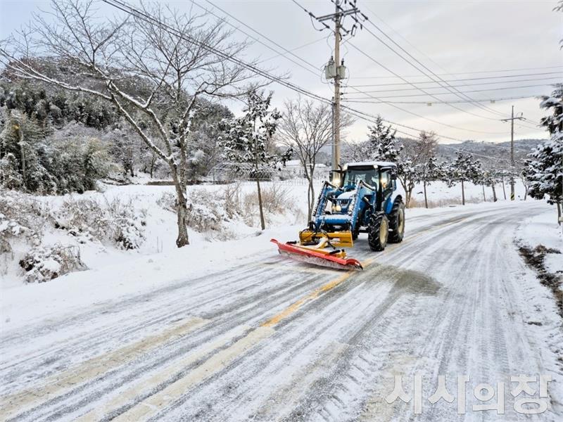 동화면과 서삼면이 잇따라 제설자원봉사단 발대식을 열고 마을 길 제설을 주민 스스로 책임지는 선제적인 겨울 대비 태세를 마련했다. 사진은 지난해 제설작업 현장.[시사의창=송상교기자]